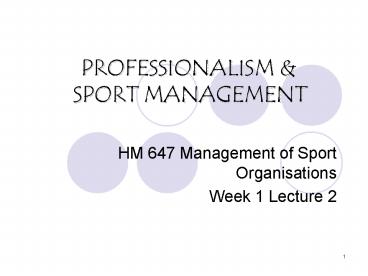 PROFESSIONALISM SPORT MANAGEMENT