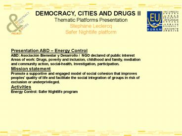 2DEMOCRACY, CITIES AND DRUGS II Thematic Platforms
