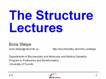 http//biochemistry.utoronto.ca/steipe - Departments of Biochemistry and Molecular and