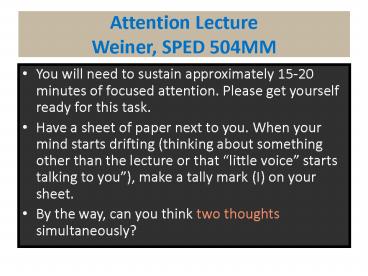 minutes for grades 8-12 A NEW VIEW OF ATTENTION