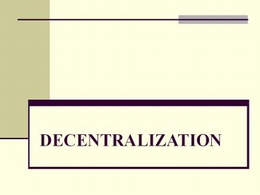 Title: DECENTRALIZATION