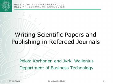 Writing Scientific Papers and Publishing in Refereed Journals PowerPoint PPT Presentation