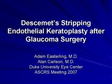 Descemets Stripping Endothelial Keratoplasty after Glaucoma Surgery PowerPoint PPT Presentation