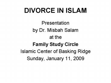 DIVORCE IN ISLAM PowerPoint PPT Presentation