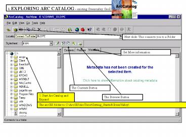 2EXPLORING ARC CATALOG existing Greenvalley