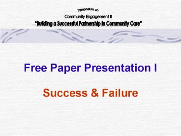 Title: Free Paper Presentation I