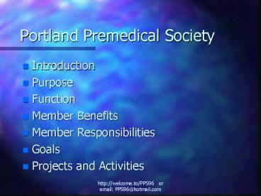 Portland Premedical Society PowerPoint PPT Presentation