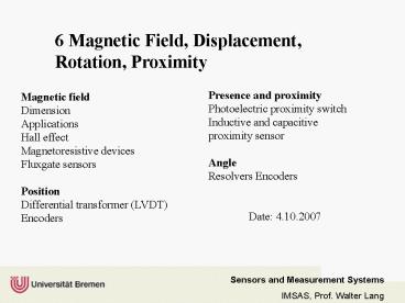 3Magnetic sensors Many measurement problems can be