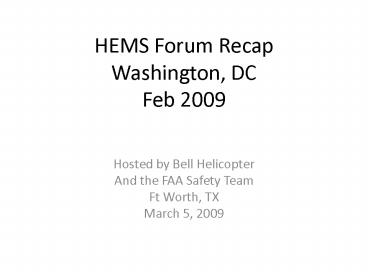 <Notice: Removed> HEMS Forum Recap Washington, DC Feb 2009 PowerPoint PPT Presentation