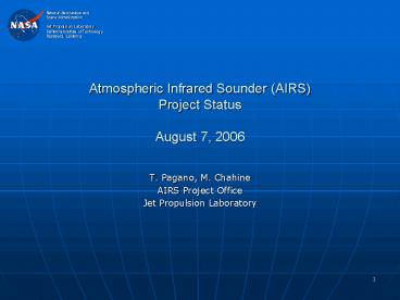<Notice: Removed> Atmospheric Infrared Sounder AIRS Project Status August 7, 2006 PowerPoint PPT Presentation
