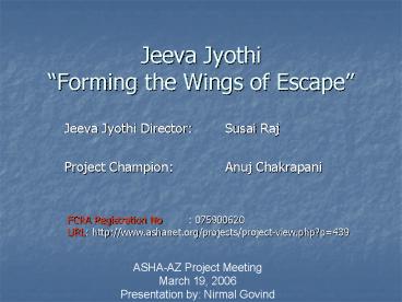 Jeeva Jyothi Forming the Wings of Escape PowerPoint PPT Presentation