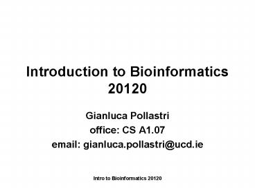 Title: Introduction to Bioinformatics 20120