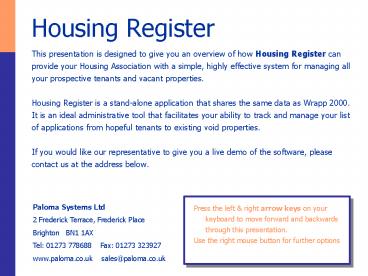 prospective tenants and vacant properties. - Housing Register is a stand-alone application
