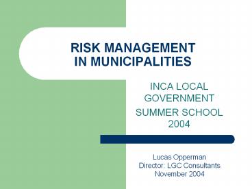 Title: RISK MANAGEMENT IN MUNICIPALITIES
