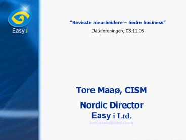 Tore Maaø Easy i tore.maao_at_easyi.com Tel 47