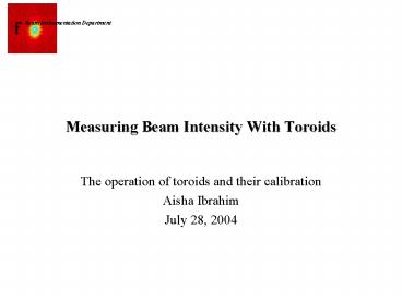 Measuring Beam Intensity With Toroids PowerPoint PPT Presentation