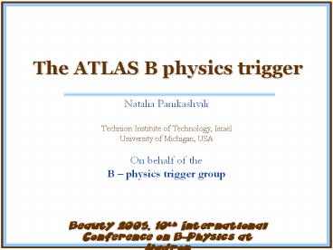pT gt 6 8 GeV ) - Higher luminosity - L 1034 cm-2s-1 LVL1 2m (