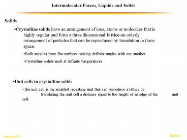 angles with one another. - Crystalline solids melt at definite temperatures.