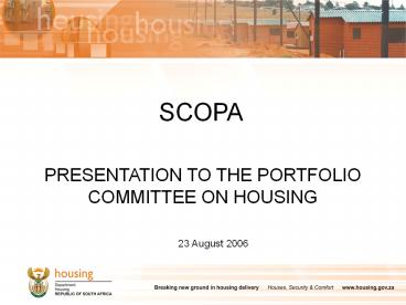 - PRESENTATION TO THE PORTFOLIO COMMITTEE ON HOUSING