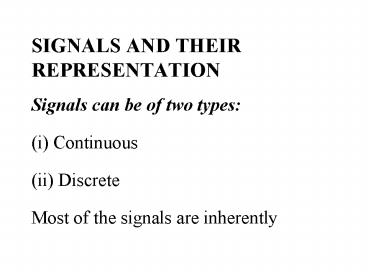 SIGNALS AND THEIR REPRESENTATION PowerPoint PPT Presentation