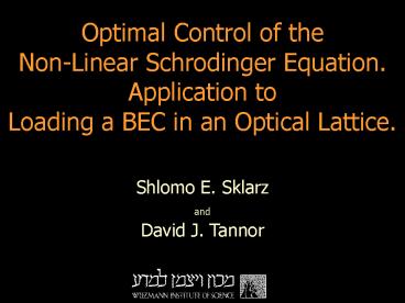 1Optimal Control of the Non-Linear Schrodinger