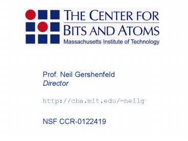 Prof. Neil Gershenfeld Director http//cba.mit.e