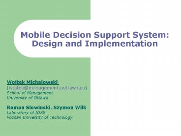 <Notice: Removed> Mobile Decision Support System: Design and Implementation PowerPoint PPT Presentation