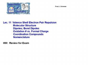Title: Lec. 11 Valence Shell Electron Pair Repulsion