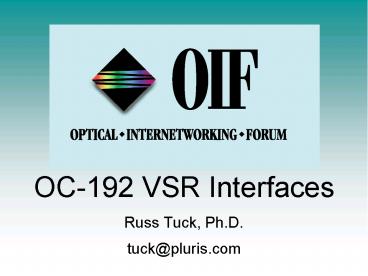 OC192 VSR Interfaces PowerPoint PPT Presentation