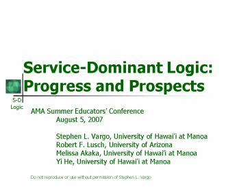 <Notice: Removed> ServiceDominant Logic: Progress and Prospects PowerPoint PPT Presentation