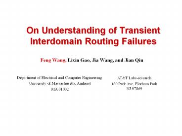 tier-1 AS during the week (1/2/20051/8/2005) - Transient routing failures can impact on popular