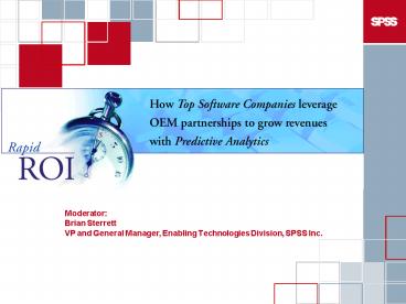 - Sr. Product Manager, Clementine, SPSS Inc.