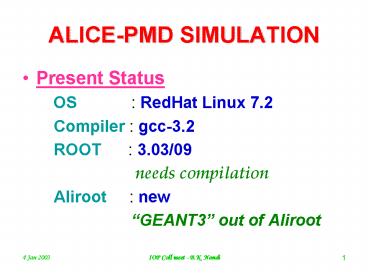 ALICEPMD SIMULATION PowerPoint PPT Presentation