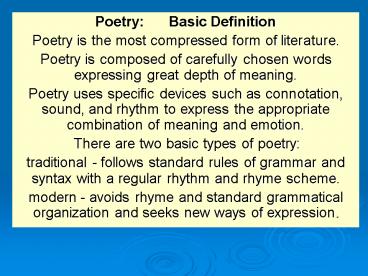expressing great depth of meaning. - Poetry uses specific devices such as connotation,