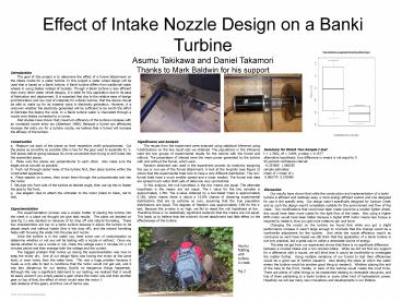 Title: Effect of Intake Nozzle Design on a Banki Turbine
