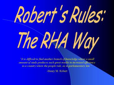 • Roberts Rules The RHA Way