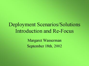 Title: Deployment ScenariosSolutions Introduction and ReFocus