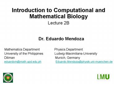 Introduction to Computational and Mathematical Biology PowerPoint PPT Presentation