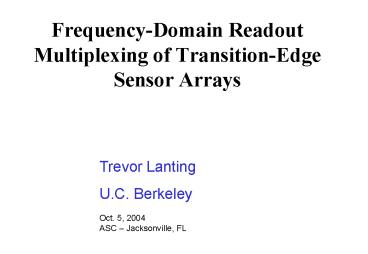 Title: FrequencyDomain Readout Multiplexing of TransitionEdge Sensor Arrays