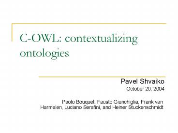 Serafini, H. Stuckenschmidt C-OWL