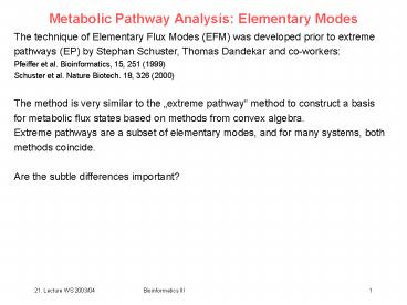 Title: Metabolic Pathway Analysis: Elementary Modes