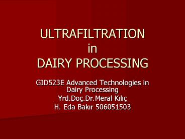 Title: ULTRAFILTRATION in DAIRY PROCESSING