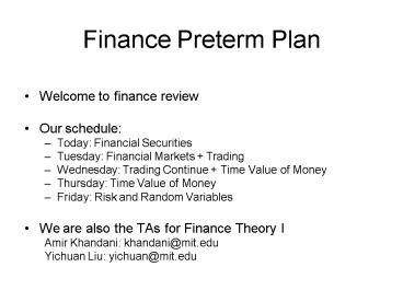 Finance Preterm Plan PowerPoint PPT Presentation