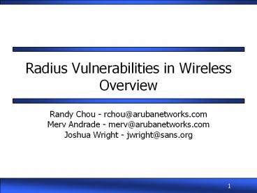 Radius Vulnerabilities in Wireless Overview PowerPoint PPT Presentation