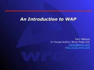 1 An Introduction to WAP Karli