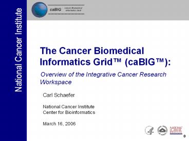 and Tissue Banking March 15 - Overview of caBIG Activities for Integrated