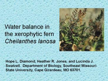 Title: Water balance in the xerophytic fern Cheilanthes lanosa