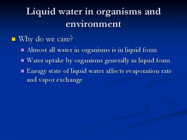 different from water in a glass - Bound to surfaces, diluted by solutes, under