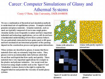 Title: Career: Computer Simulations of Glassy and Athermal Systems