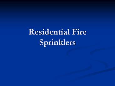 <Notice: Removed> Residential Fire Sprinklers PowerPoint PPT Presentation